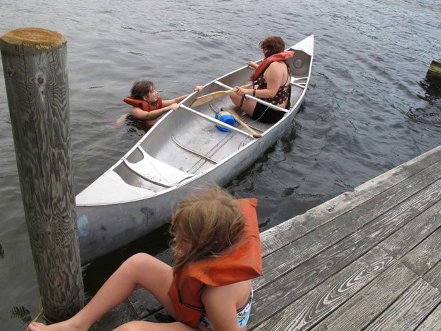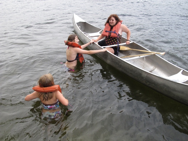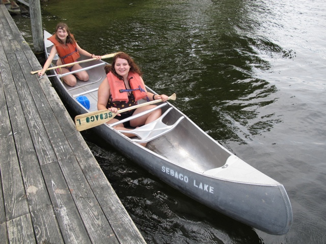 Before long, we arrived at our next destination: Sebago Lake Lodge. Seeing the lake, the canoes, and time on the clock, the girls were anxious to get in the water. What happened next was an experience that makes these trips worth the effort and expense.
